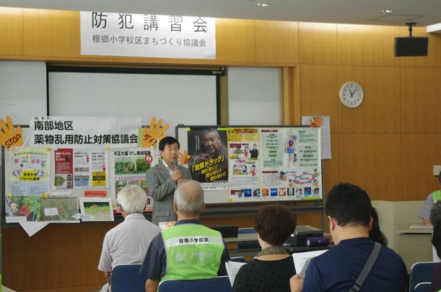 防犯部会では、昨年度に引き続き、令和元年7月9日(火)根郷小学校のご協力を得て1~4年生を対象とした防犯講習会を根郷公民館で開催致しました。参加した児童はおよそ300人で、佐倉警察署生活安全課の関口様による、「自分の身を守るために」をテーマに、「危険な場所や対処方法」をDVDを視聴して学び、その後講話で「いかのおすし」「はちみつじまん」の防犯標語を覚えました。昨年も同様の内容で防犯講習会を行いましたが、佐倉警察署の関口様が昨年参加した児童に、防犯標語を覚えているか質問したり、NHKの「ざわざわ森のがんこちゃん」DVDを使い、分かりやすく伝えて頂いたことにより、児童は最後まで熱心に講習を受けていました。