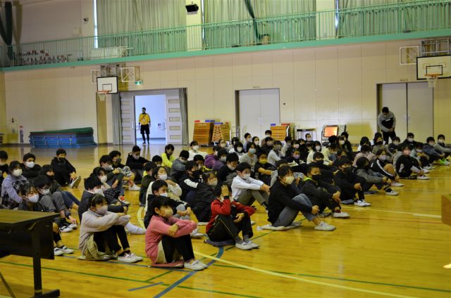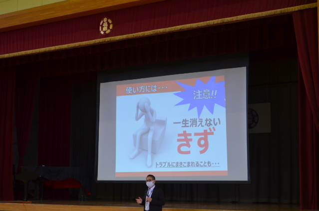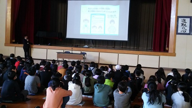 令和2年12月8日(火)午前9時20分から11時15分まで、根郷小学校体育館において、同小学校の5・6年の児童約170人を対象に、「スマホ・ケータイ安全講習会」を開催致しました。