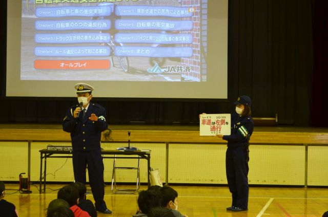 令和2年12月17日(木)午前9時20分から11時15分まで、根郷小学校体育館において、同小学校の3・4・6年の児童約235人を対象に、「自転車安全教室」を開催致しました。