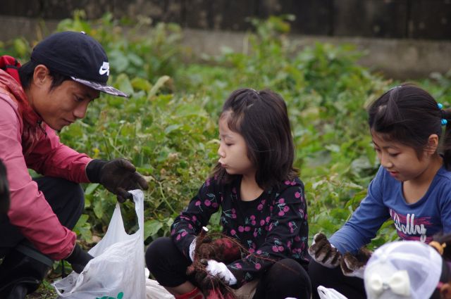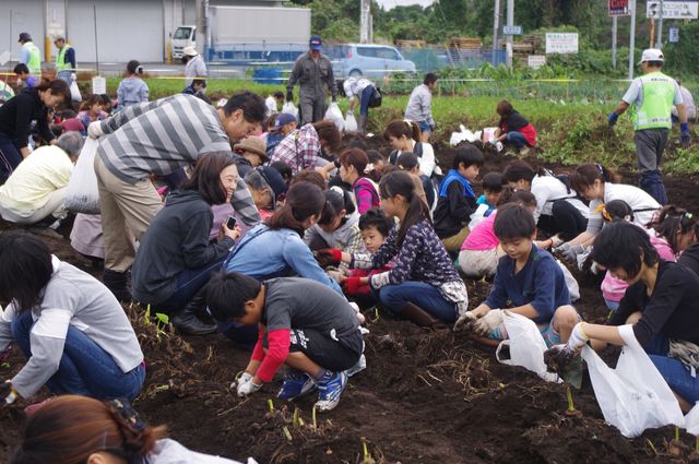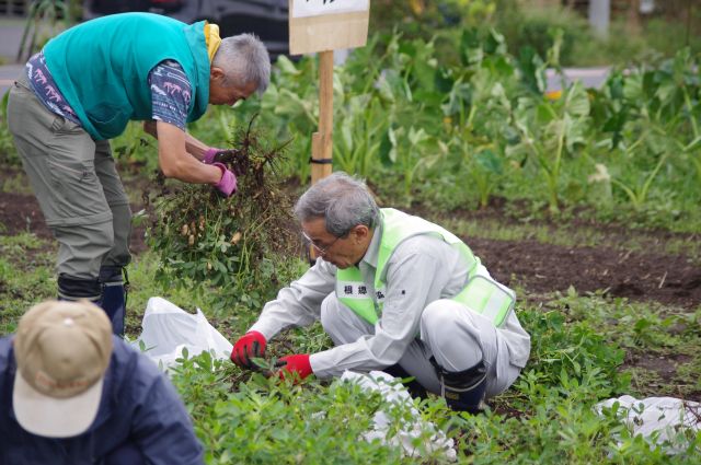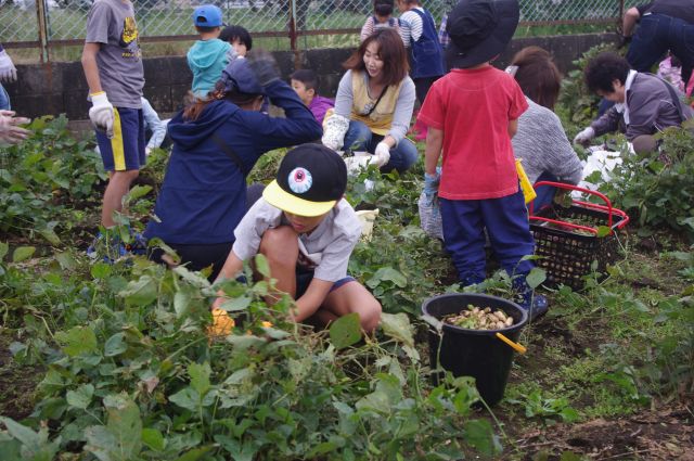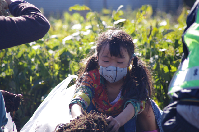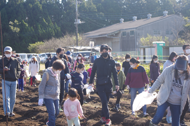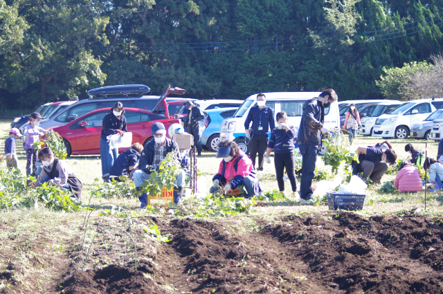 環境文化部会では、令和3年10月24日(日)10回目となる、野菜収穫体験を実施いたしました。根郷小学校児童とその家族や南部児童センター親子など183名が参加し、さつま芋・里芋・枝豆・落花生などの農作物を収穫しました。昨年は新型コロナウィルス感染拡大の影響で一般の方の参加は見送られ、2年ぶりの開催となり、参加者は袋いっぱいに農作物を詰め込み収穫祭は大盛況となりました。秋葉部会長は、今年は新聞やケーブルテレビの取材もあり、このイベントが多くの皆さんに認知され、開催の目的である、人の触れ合いの大切さや、子供たちが自然とのかかわりの大切さに気付くきっかけになればと話していました。