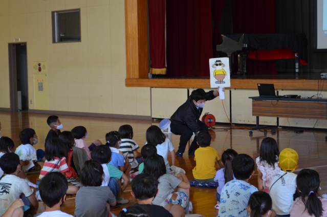 防犯部会では、令和3年7月16日(金)午前9時20分から11時15分まで、根郷小学校及び佐倉警察署生活安全課のご協力を得て1・2年生を対象とした防犯講習会を根郷小学校の体育館で開催致しました。小林事務局長の司会で、渡部まちづくり協議会会長の挨拶、田辺校長先生のお話の後、佐倉警察署生活安全課の香川様と川野様による、「自分の身を守るために」をテーマに、話して頂きました。参加したのは、1年生77人、2年生87人併せて164人と担任の先生方々で、不審者に声を掛けられた時の有効な行動指針「いかのおすし」と、怪しい人の特徴「はちみつじまん」を基に分かり易く解説を行って頂ました。